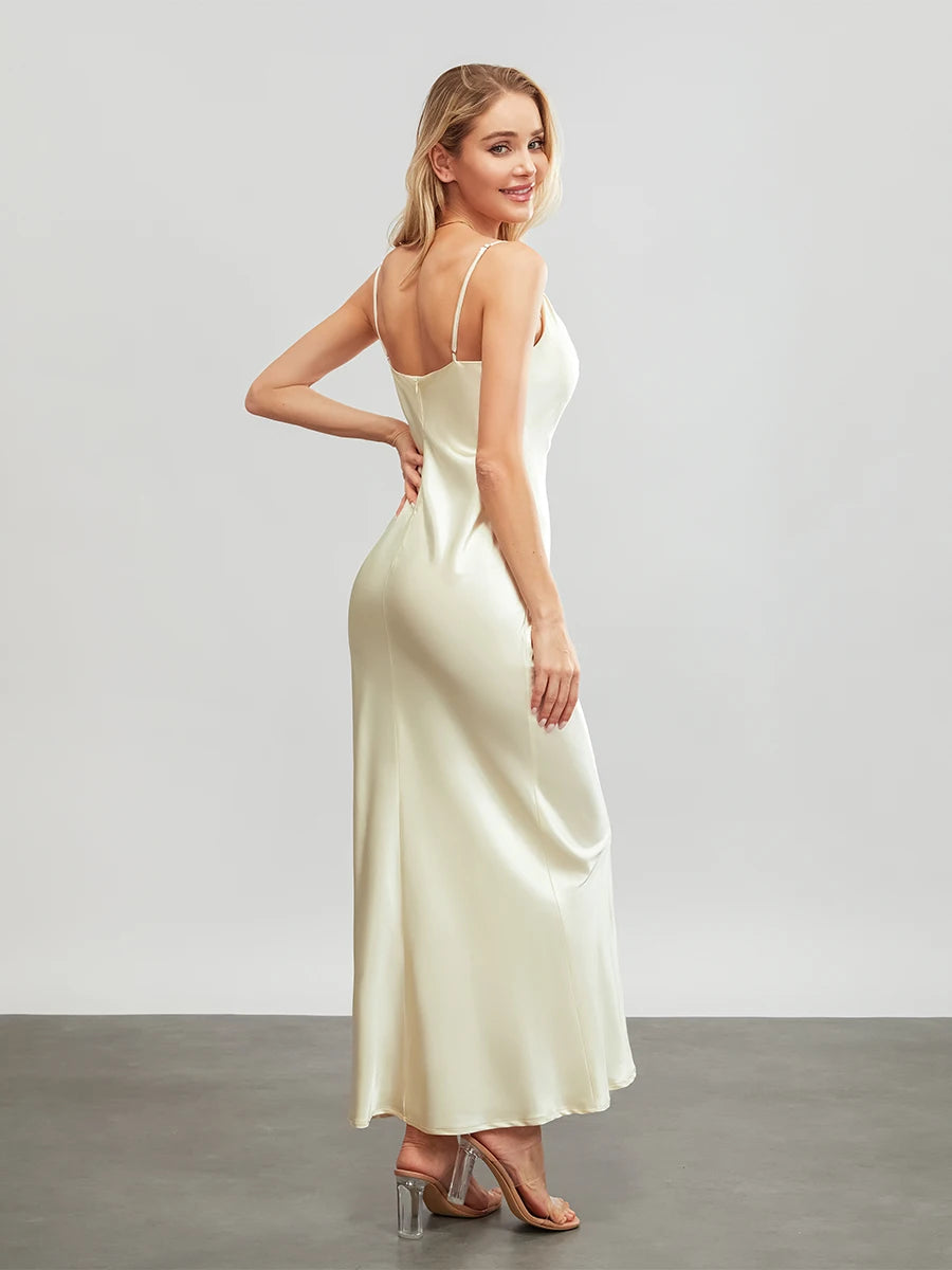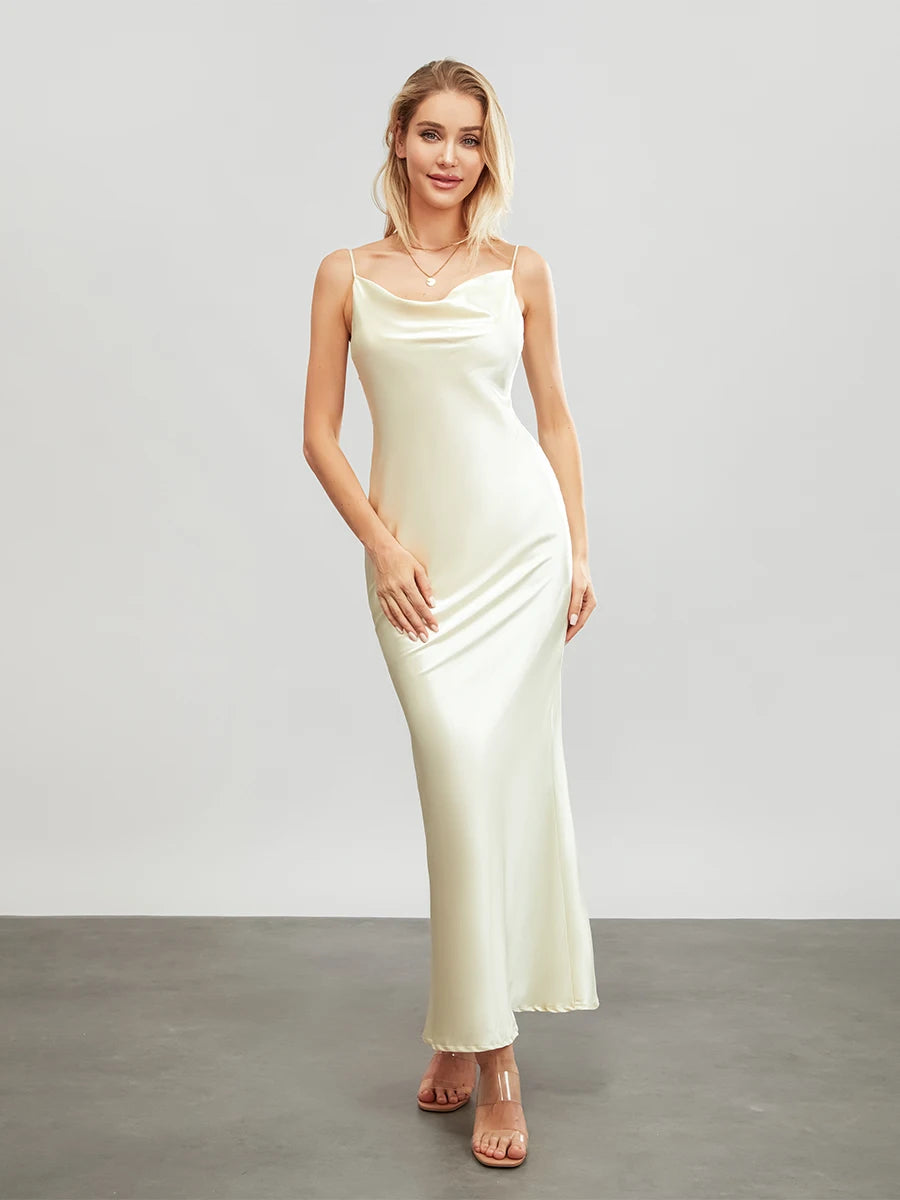 Women Long Dress Solid Color Spaghetti Strap Cowl Neck Sleeveless Dress Summer Cami Dress